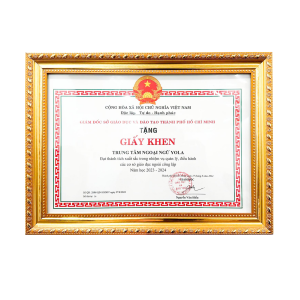 Giải thưởng Hoàn thành xuất sắc trong hoạt động hợp tác cùng IELTS IDP Việt Nam giai đoạn 2022 – 2023.