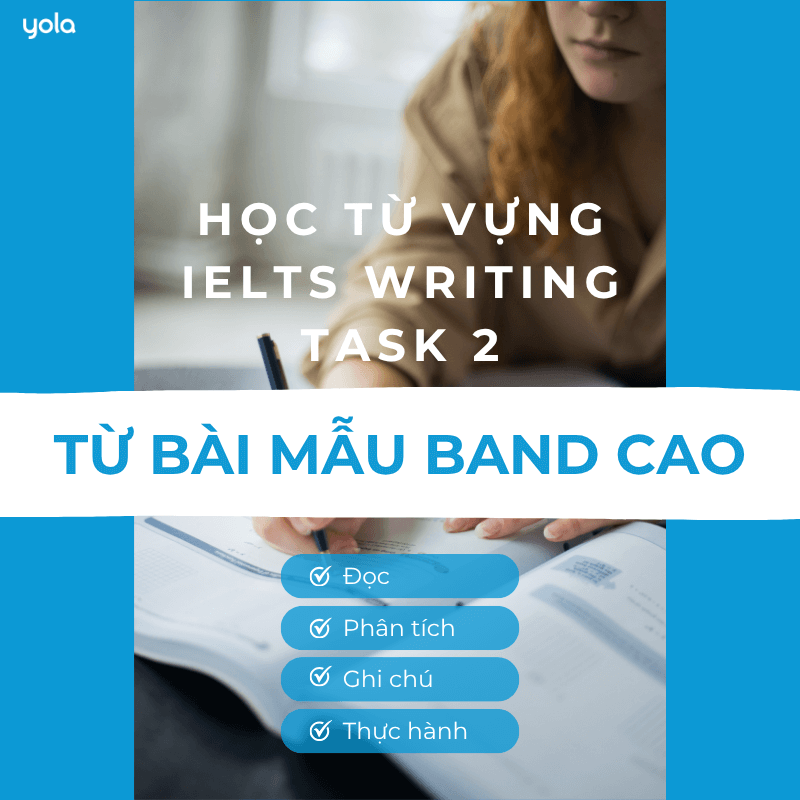 Học từ vựng cho IELTS Writing Task 2 từ các bài mẫu band cao giúp thí sinh đạt điểm Lexical Resource từ 7–8. Điều này bao gồm: