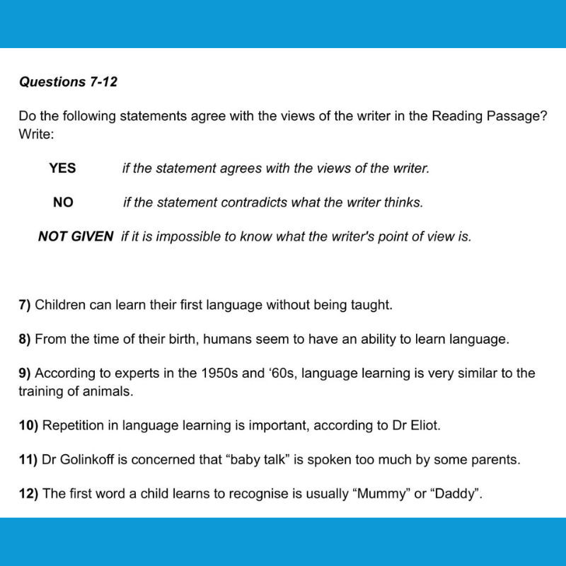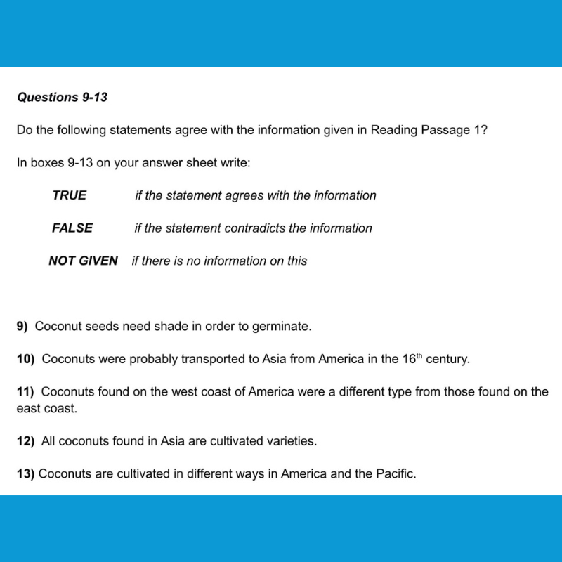 - True/False/Not Given