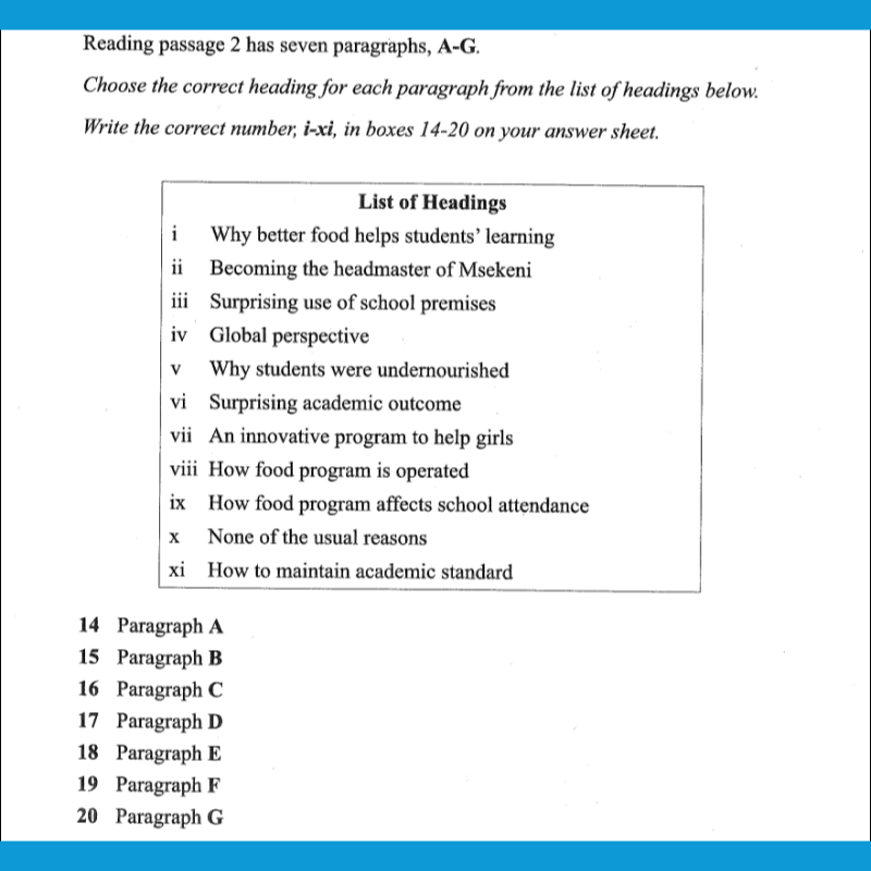 5- IELTS Reading Questions Types loại Matching Headings