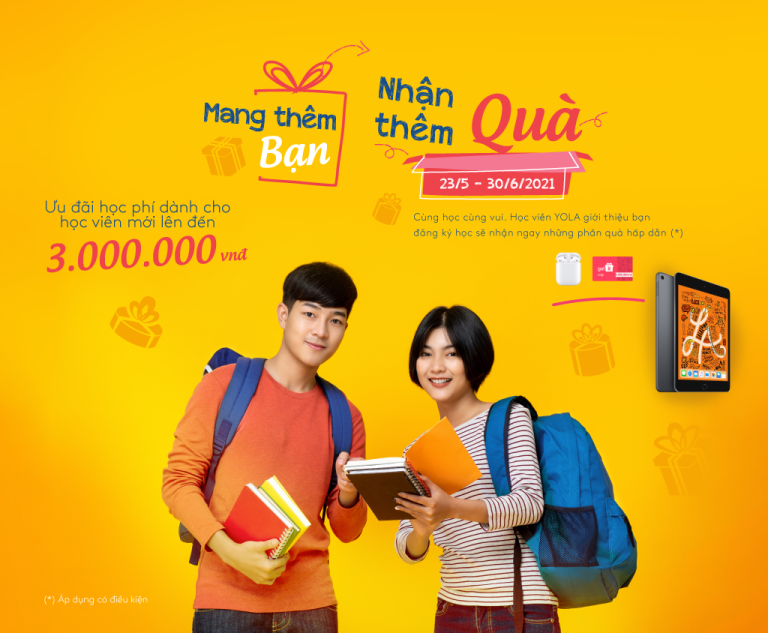 YOLA hân hạnh mang đến một chương trình tri ân đặc biệt cho tất cả học viên YOLA khi giới thiệu YOLA đến bạn bè và người thân. Từ ngày 23/5/2021, tất cả học viên YOLA khi giới thiệu thành công bạn bè và người thân đăng ký các khóa học tại YOLA sẽ nhận […]
