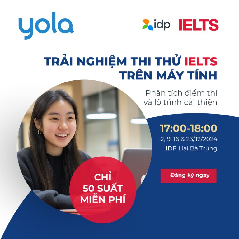 [YOLA x IDP] TẶNG 50 SUẤT THI THỬ IELTS TRÊN MÁY TÍNH